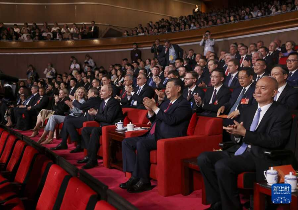 兩國(guó)元首共同欣賞由中俄兩國(guó)藝術(shù)家聯(lián)袂呈現(xiàn)的精彩文藝演出。