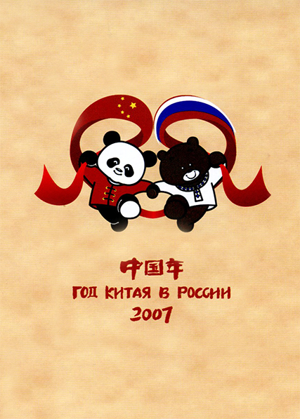 2005年7月胡錦濤主席訪俄期間與俄時任總統普京共同宣布,根據《〈中俄睦鄰友好合作條約〉實施綱要》,中俄兩國將于2006年在中國舉辦“俄羅斯年”,2007年在俄羅斯舉辦“中國年”?!≈卸黼p方確定了“俄羅斯年”徽標,圖案為代表中國和俄羅斯的大熊貓和棕熊,身著中、俄兩國國旗,背景為中國天壇和俄羅斯瓦西里升天大教堂。圖案上用中俄文書寫“俄羅斯年”的口號-“攜手共進”。